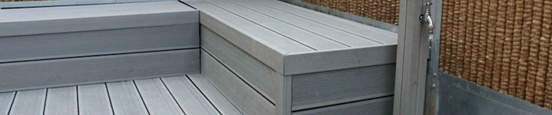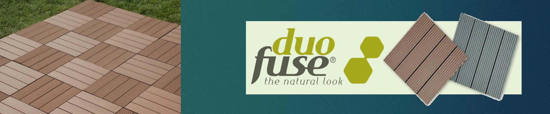 DuofuseŽ composite decking tiles - After years of experience and success with the production of wood composite decking Plastivan adds composite decking tiles to the Duofuse range. Renew your terrace in no time thanks to the limited dimensions (30x30x2.2cm) and the unique click system. No accessories, beams, clips, screws, glue... needed: a hard flat surface is sufficient. Available in Medium Brown and Stone Grey. Ideal for: - Covering an outdated terrace - Roof terrace of an apartment - Finishing of a basement or attic - Temporary floor on an exhibition stand - Balcony - Garden path - Placement in and around a greenhouse or shed.