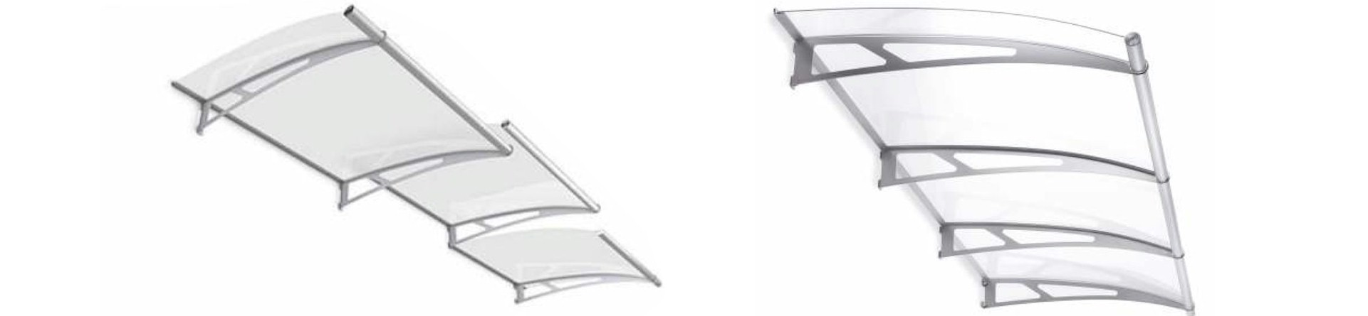 Most standard canopies are in stock for a quick despatch normally 2-3 days we will call you if your canopy is not in stock, and let you know when to expect your canopy. Our door canopies are easy to install in a few minutes. Strong weather protection. No rot. No corrosion. Durable and attractive door canopies that are made of strong yet light powder-coated aluminium. With many options of sizes, colours and accessories. No flashing, carpentry or masonry work required. Most models come fitted with gutters. They will not corrode or rot. To enhance weather protection and/or looks, a range of wind-shields, brackets and gallows are offered optionally. Most canopies come with a 5 year manufacturer's warranty.