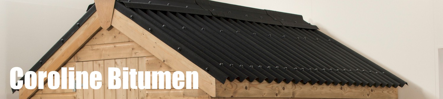 Coroline Bitumen Roofing Sheet. Coroline bitumen sheet is a tough yet light weight roofing material. It is available in a choice of colours including Black, Green, Red and Brown. It is guaranteed waterproof for 15 years.