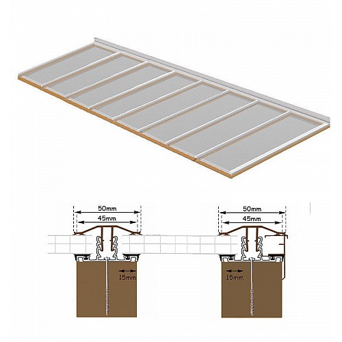 IMPORTANT REMEMBER TO LEAVE A CLEAR EXPANSION GAP OF 4MM BETWEEN THE BAR AND THE POLYCARBONATE SHEETS.