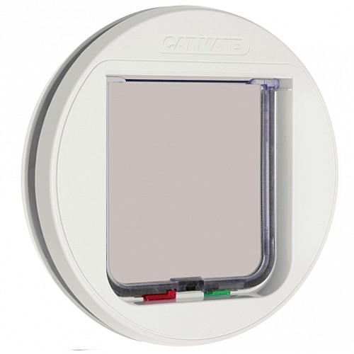 The Catmate 210 Glass Fitting 4-Way Locking Cat Flap combines attractive circular styling with practicality, making it a popular choice for both wooden panel doors and glass or acrylic installations. It is especially recommended for single/double glazing and very thin panels/screens, with a self-lining frame that fits panels up to 30mm (1.25") thick. Ideal for homes with glazed doors or thin panels, this flap is designed for secure and easy pet access. Note: For toughened or double glazing, a new glass panel will be required. Available in White and Brown to suit your décor.