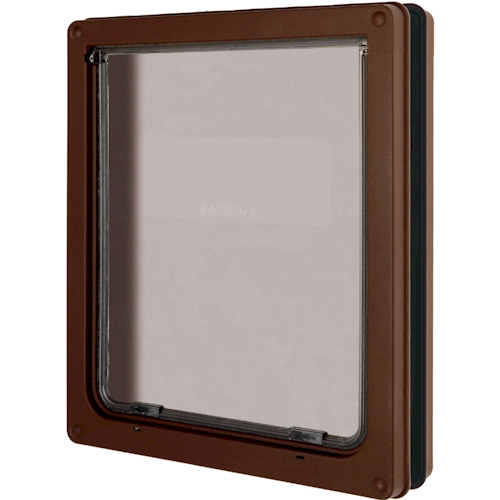 The Dog Mate 216 Large Dog Door in brown is designed for large dogs such as Labradors, German Shepherds, and other breeds with a shoulder height up to 25" (630mm). Constructed with durability in mind, this door features a silent action weatherproof flap with a vision panel, ensuring your home stays insulated while allowing easy access for your pets. The self-lining design fits doors and walls up to 2" (50mm) thick, making installation flexible. A secure locking panel adds safety and control, allowing you to manage your pet’s access when needed.
