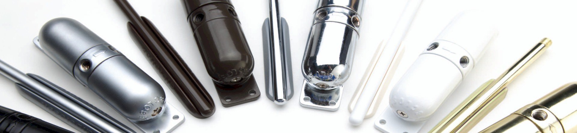 Neat, compact and durable. Suitable for use with doors up to 150 lbs. (68kg). Available in polished brass, satin chrome, white, black and brown finish. Suitable for right or left-handed doors