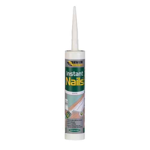 Everbuild Instant Nails is a versatile, high-strength adhesive ideal for many home improvement projects. Its solvent-free formula, quick grab, and ability to fill gaps make it an excellent alternative to traditional mechanical fixings. Dries white and is overpaintable, providing a seamless finish.