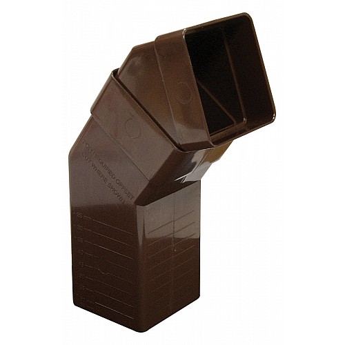 The Floplast 65mm Brown Square Downpipe Adjustable Offset Bend offers a customizable solution for your downpipe system. This innovative two-piece offset bend can be cut to size, with markings in increments of 5mm, allowing for precise adjustments from 25mm to 65mm. Perfect for Floplast 65mm square downpipes, it provides flexibility in positioning your downpipe and adapting to variable distances between the running outlet and the wall. Ideal for situations requiring specific downpipe alignment, this bend ensures a secure, efficient water flow.