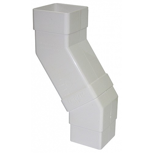 Description : Floplast 112 degree Adjustable offset downpipe bend for use with Floplast 65mm  square downpipes. This two piece offset bend can be cut to size, marked in increments of 5mm, from 25m to 65mm. Allowing for variable distances between the running outlet and the downpipe against the wall.