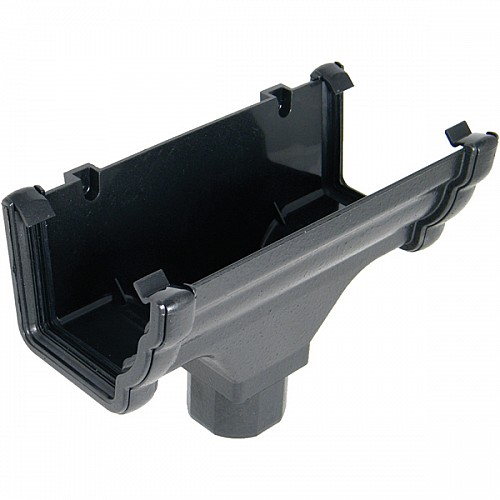 Floplast Cast Iron Effect 110mm Black Niagara Ogee Gutter In-Line Running Outlet