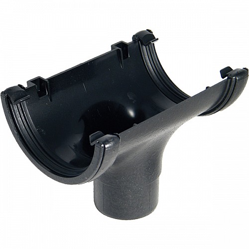 Floplast Cast Iron Effect 112mm Half Round Black Gutter In-Line Running Outlet