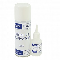The Mitre Kit Activator & Cyanoacrylate Adhesive is the ultimate solution for fast and secure bonding of mitre joints. This kit includes a 200ml pressurised activator can and 50g of cyanoacrylate adhesive, offering everything you need for quick and reliable adhesive applications. The Mitre Activator helps accelerate the curing process of the Super Glue, ensuring an instant bond, ideal for use in woodworking, cladding, and other fine applications where precision and durability are required.