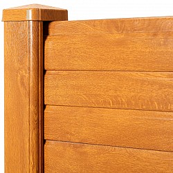 this woodgrain effect fencing is beautifully foiled and available across the full range of gravel boards, post caps and utility strips and is available in Golden Oak, Rosewood, Black and Anthracite Grey.