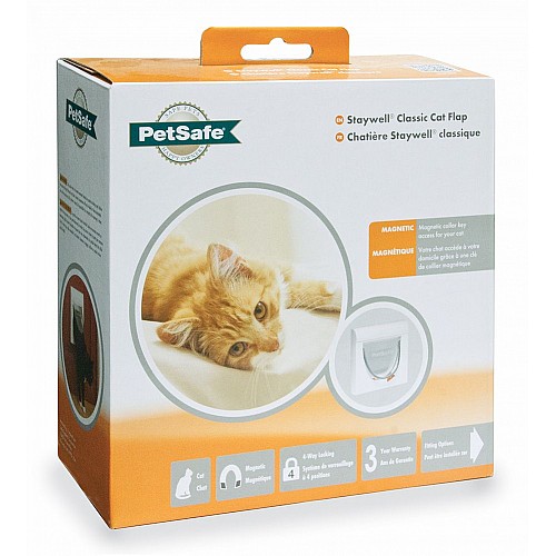 The Petsafe Staywell 932 (formerly known as Staywell 32) is a magnetic cat flap designed to give your cat freedom to roam while ensuring security and protection. With its 4-way security lock, your cat can enjoy the flexibility of in-only, out-only, open, or locked settings, offering complete control. The magnetic collar key provides a cat-friendly, energy-efficient design that is easy to install into walls or doors.