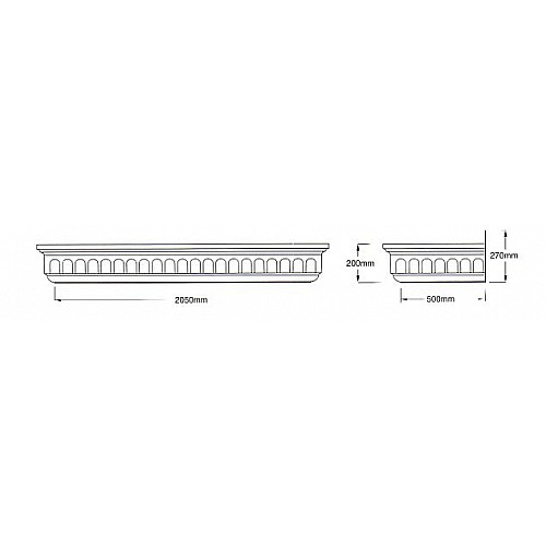 Flat white-topped canopy with a smooth white fascia and a dentil moulding finish with an integral gutter system or supplied as a solid flat top Standard sizes 1.550m and 2.050m x 500mm.
