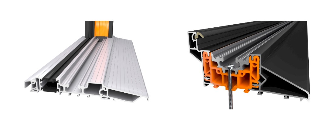 Sill options include a WarmCore standard threshold with integral sill, or standard threshold with an additional 150mm thermally-broken aluminium sill. The Part M compliant low threshold design is thermally-broken aluminium and optional ramps and cover trims can be used internally, externally or both, depending on requirements. Part M compliant low threshold can also be installed without any ramps, so that flooring can be laid up to the edges of the threshold or the threshold can be neatly set into the floor to create a flush floor level through the doorway.